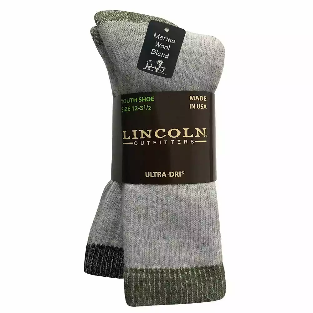 Lincoln Outfitters Boy’s Merino Wool Blend Boot Sock 2 Pack Black – L2/8857-OL/BL