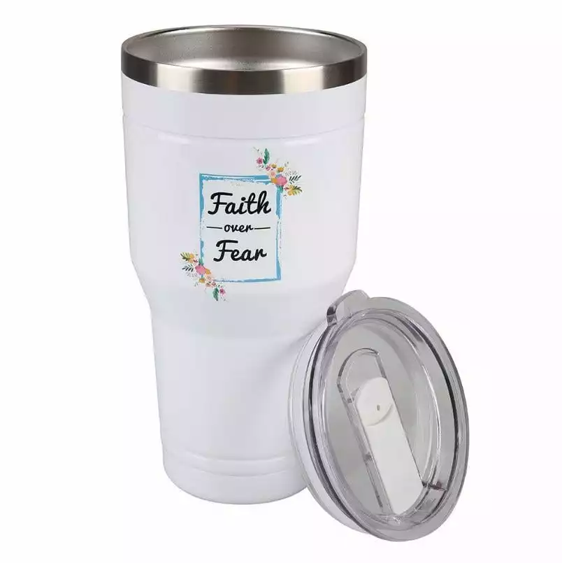 Lincoln Outfitters “Faith Over Fear” 30 oz. Religious Tumbler, Pink – 89-635-0204 – Tumblers