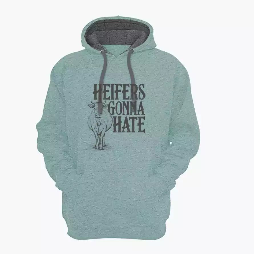 Lincoln Outfitters Heifers Gonna Hate Ladie’s Long Sleeve Hoodie, Aquifer Light Heather – LO-LH30 – Hooded Sweatshirts Women’s