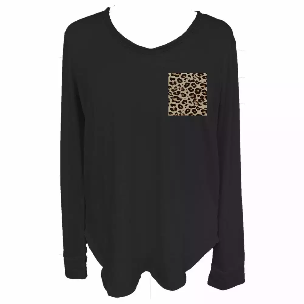 Lincoln Outfitters Ladies Long Sleeve Leopard Pocket Black – LO-LFLSPK-01 – Long Sleeve Shirts Women’s