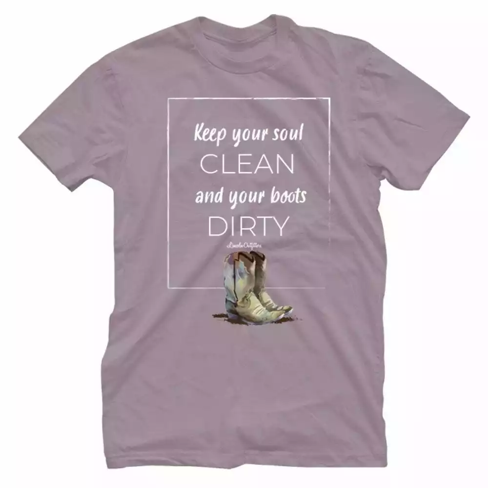 - Front Chest Screen Print: “Keep Your Soul CLEAN and Your Boots DIRTY” Design