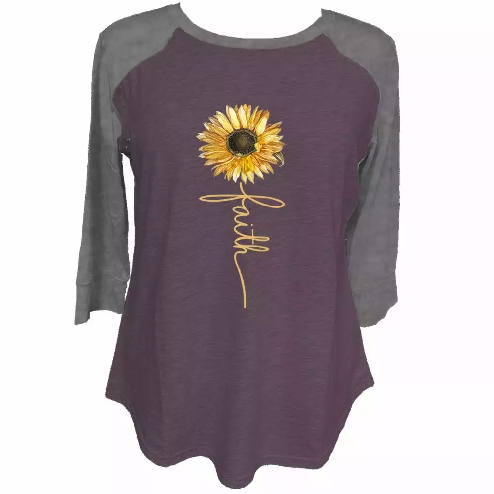 Lincoln Outfitters Ladies Three Quarter Sleeve Faith Sunflower Graphite Heather- LO-LFW-05