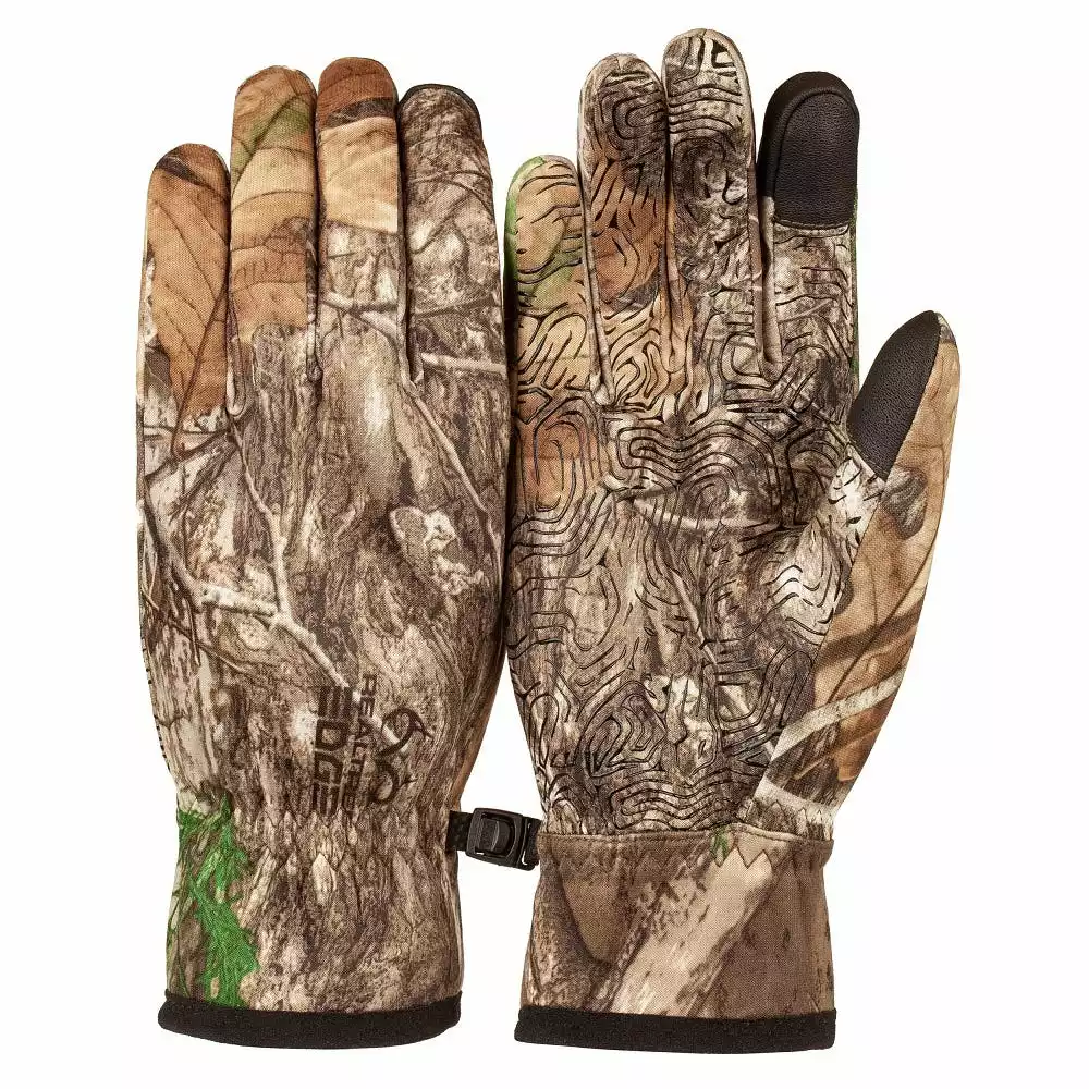 This is our lightest waterproof glove ever. It’s made with a silky knit jersey that’s fused to a breathable waterproof Hydrashield® insert and interior soft fleece for three layers of performance fused into a one-piece shell. Easy on and easy off – the lining stays put each time. The Real Tree Edge® camo shell is treated with a DWR treatment to keep moisture and light snow away, and this glove is surprisingly warm for its lack of bulk. It features touch screen enabled thumb and index fingers so your hands stay protected while you use your devices. A silicon topographical printed palm gives you a strong and steady grip on your weapon, the treestand or the 12 pointer you’re taking home.