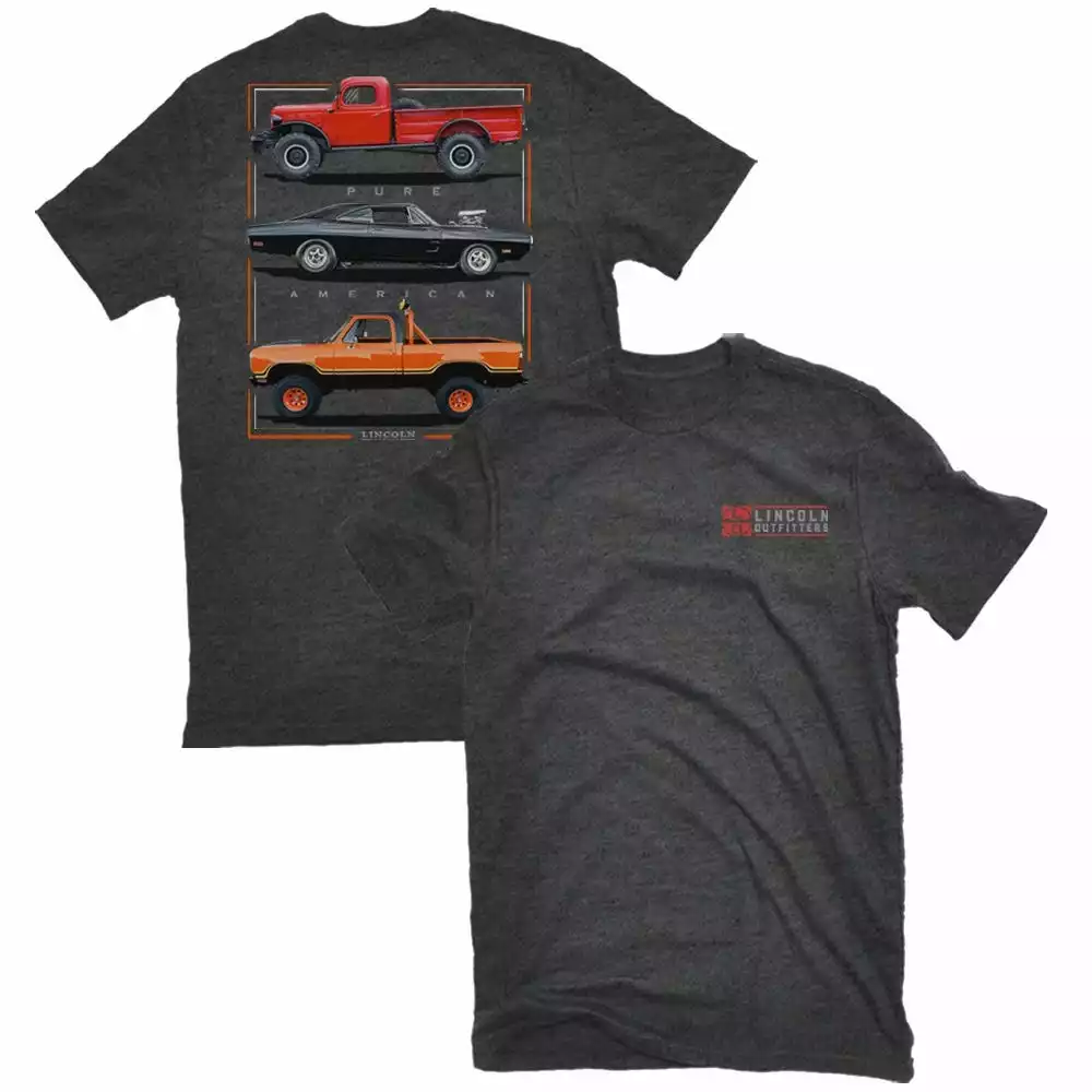 Lincoln Outfitters Men’s Short Sleeve Three Truck Pure American T-Shirt Charcoal Heather – LO-130 – T-Shirts