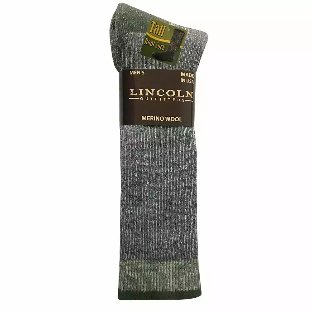 Lincoln Outfitters Men’s Tall Merino Wool Boot Sock Charcoal – L72313-CH/GRN – Socks