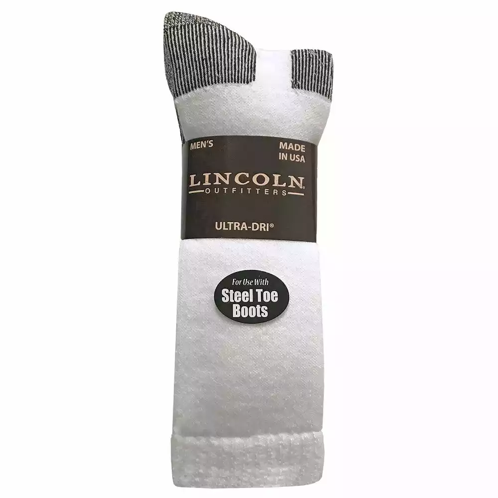 Lincoln Outfitters Men’s Ultra-Dri Steel Toe Work Sock 2 Pack White – L2/837-W – Socks