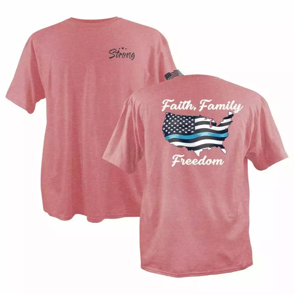 Lincoln Outfitters Strong Ladies Faith Family Blue Short Sleeve T-Shirt – SGL-37