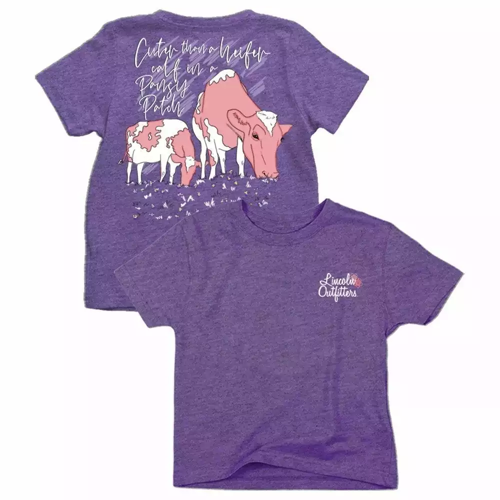 Lincoln Outfitters Youth Girl’s Heifer in a Pansy Patch Short Sleeve T-Shirt – LOY-24 – T-Shirts